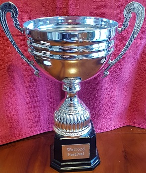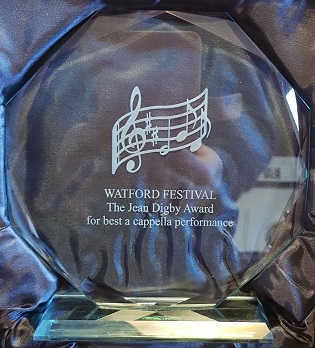 In March we entered the prestigious Watford Festival, which has been going for over 70 years. We competed in the class for choral groups with fewer than 24 singers, (we had 11) and won.